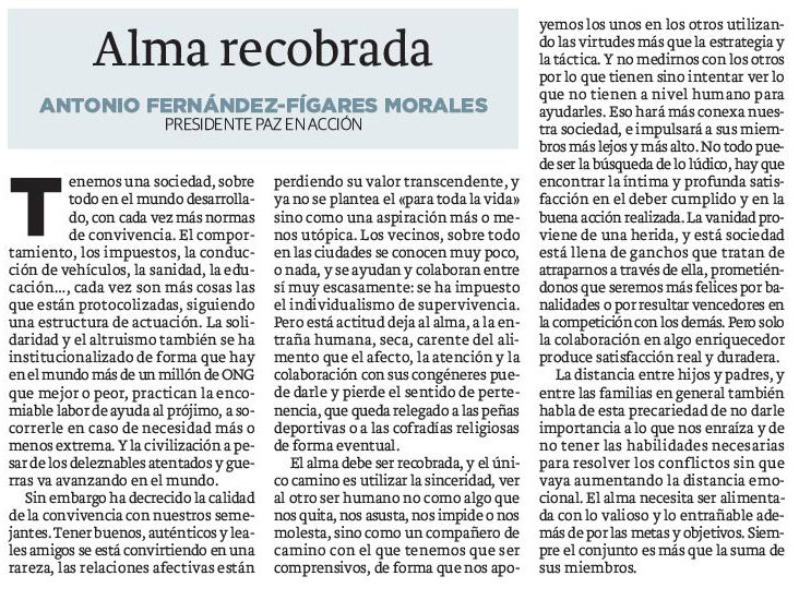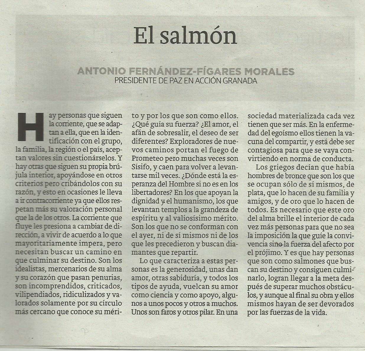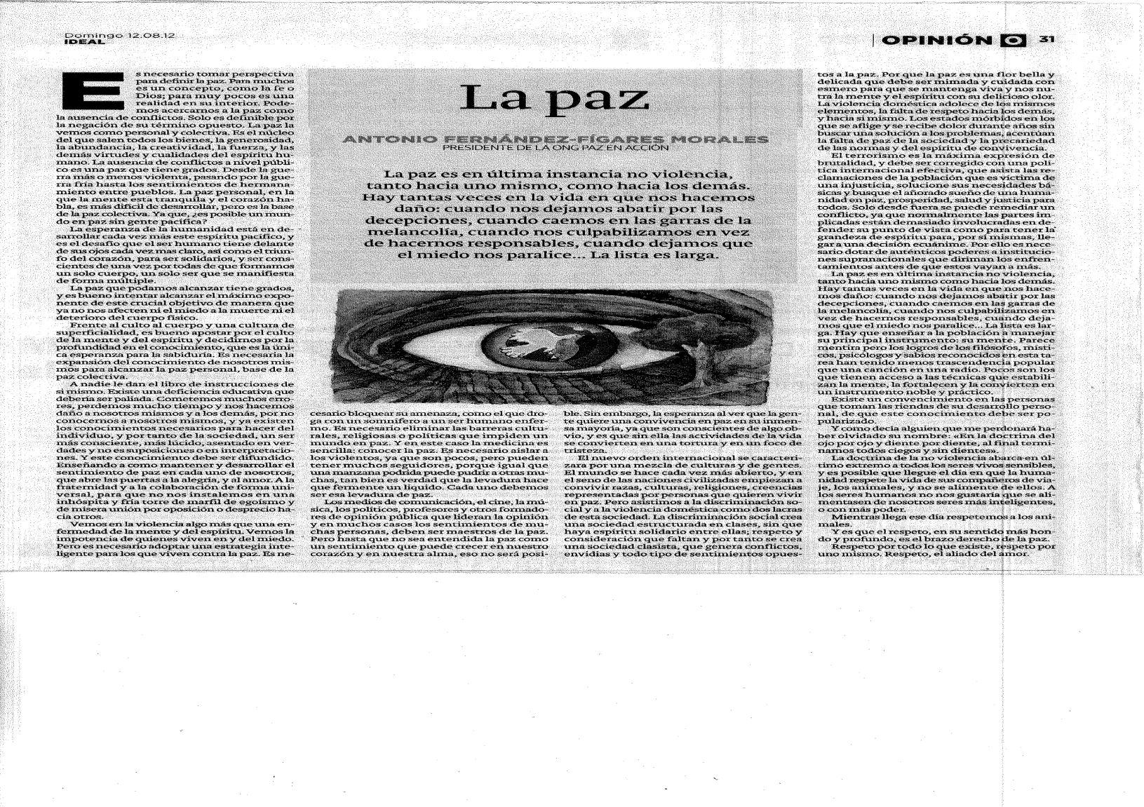 Artículo en Ideal de Granada del director de Paz en Acción, 2016.