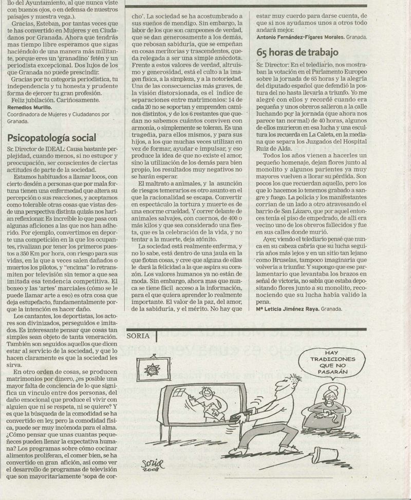 Aparición en el periódico IDEAL de Granada, el 29 de marzo de 2007