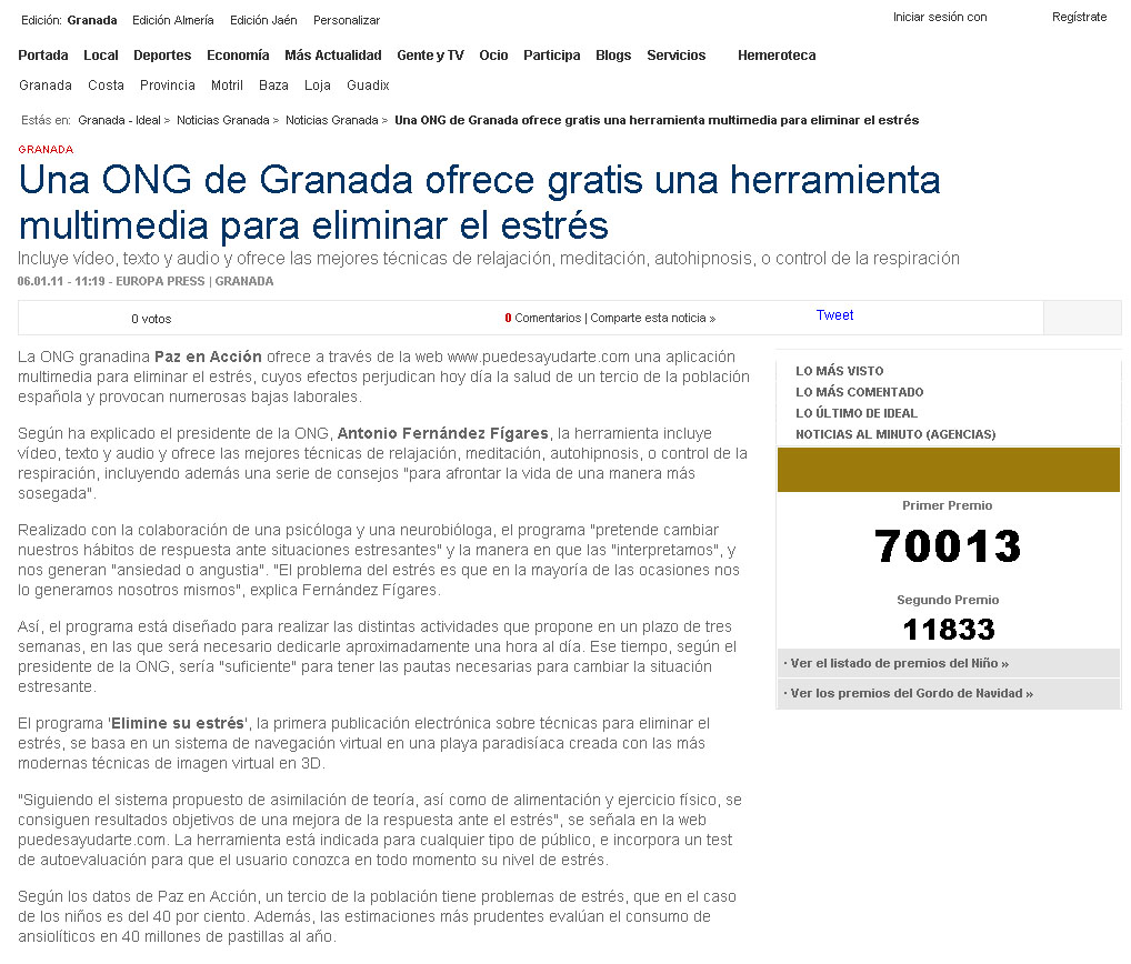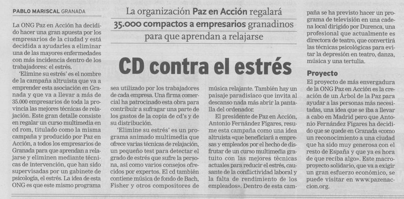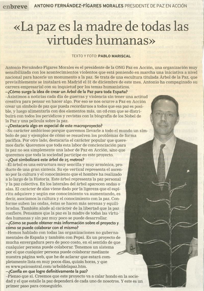 El Mundo - 22/01/2013 - La ONG Paz en Acción lanza un programa informático para concienciar sobre la paz.